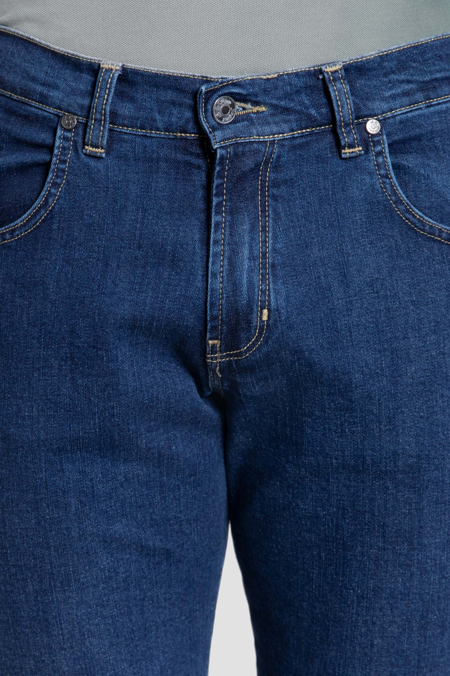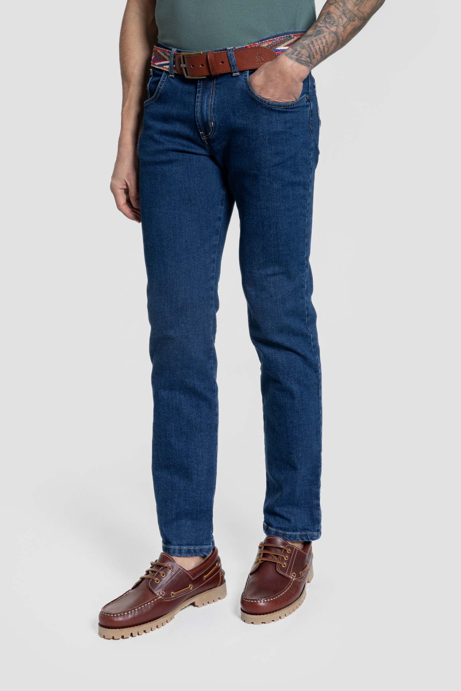 Vaquero azul medio de estilo clásico, lavado a la piedra. Diseñado para quienes buscan elegancia atemporal, comodidad y durabilidad. Confeccionado en denim de alta calidad, ofrece un ajuste impecable, tacto firme y gran resistencia al uso diario. Su tono marino profundo lo convierte en una prenda versátil, ideal tanto para looks formales como casuales. Un básico imprescindible en cualquier armario masculino que valora la ropa clásica, bien hecha y pensada para durar.