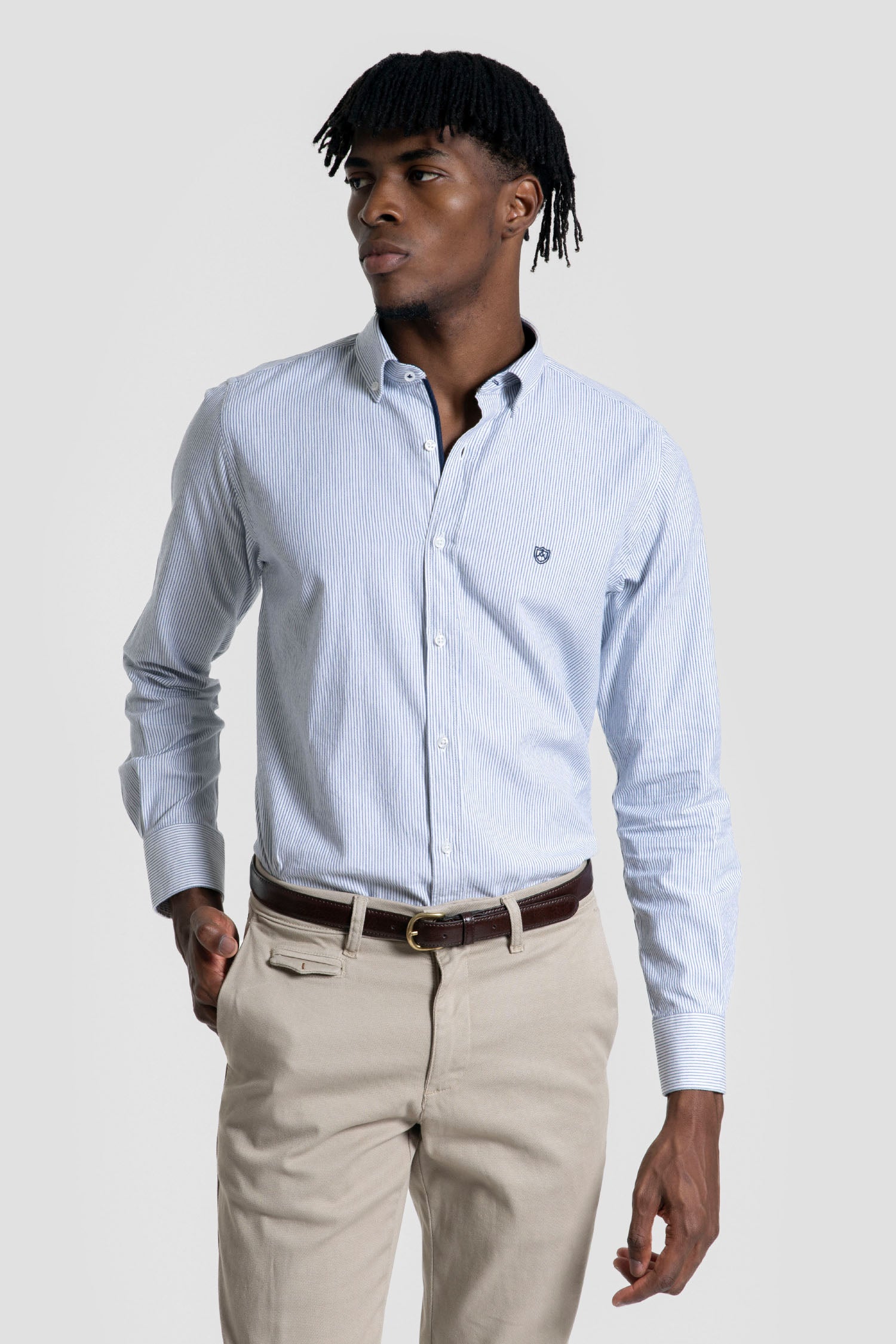 Esta camisa de rayas en tono azul marino combina un diseño clásico con un toque de frescura natural. Su patrón de rayas ordenadas aporta sofisticación, mientras que el color verde ofrece versatilidad para diferentes estilos y ocasiones. Ideal para quienes buscan destacar con elegancia sin renunciar a la comodidad y estilo contemporáneo.