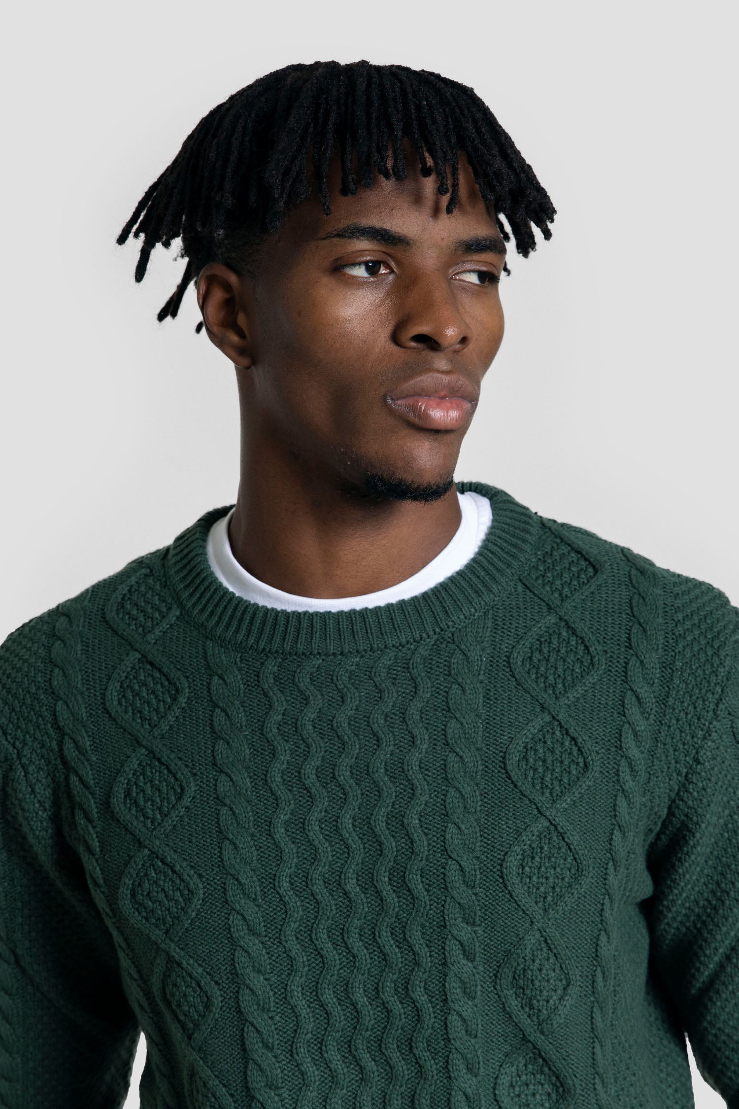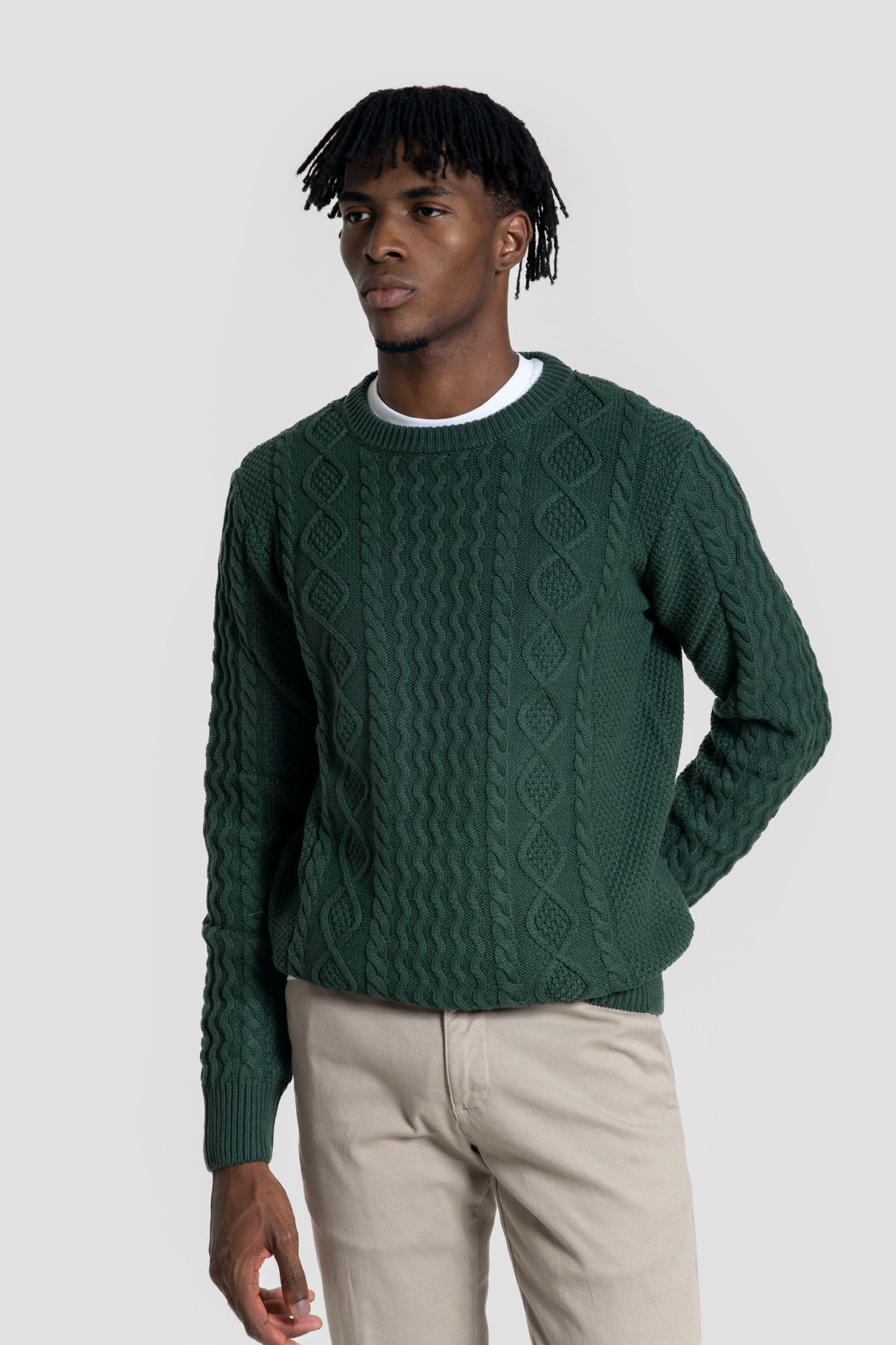 Este jersey en punto trenzado color botella combina sofisticación y confort. Su tejido cuidadosamente elaborado ofrece calidez y durabilidad, ideal para mantener el estilo durante las temporadas frías. Perfecto para quienes buscan una prenda versátil que aporte textura y un toque elegante a cualquier atuendo.