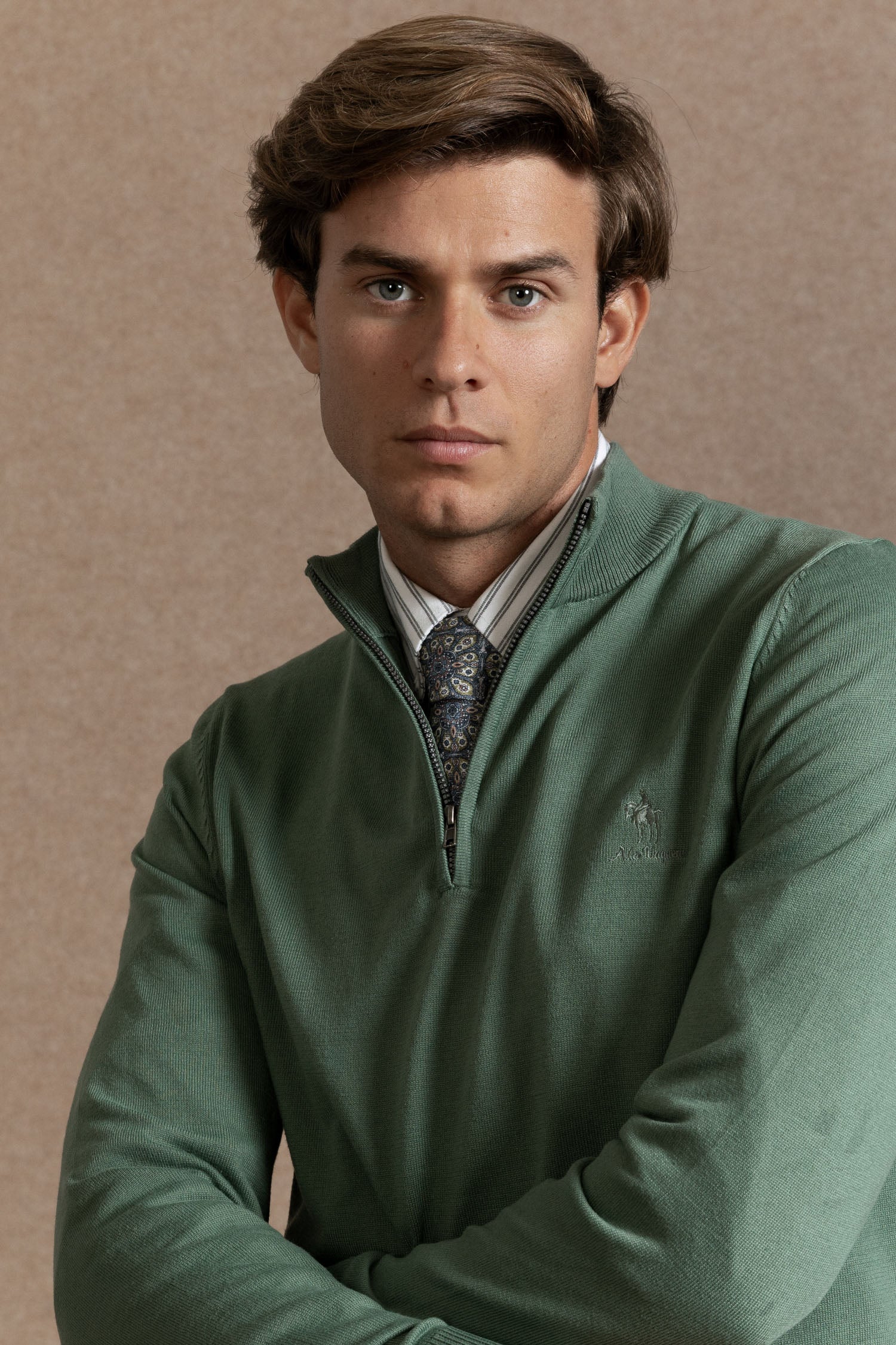 Este jersey de cuello con cremallera en color verde hoja combina funcionalidad y estilo. Su tejido cómodo y transpirable ofrece abrigo ligero, ideal para capas en climas frescos. El diseño con cremallera facilita la regulación de la temperatura y aporta un toque moderno, perfecto para actividades al aire libre o uso diario. Su tonalidad natural realza cualquier conjunto con sofisticación sutil.