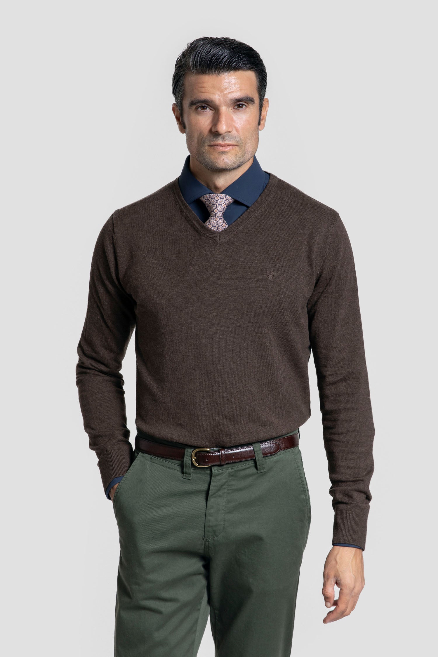 Este jersey de cuello pico en tono marrón, denominado Raíces, es una prenda versátil que combina elegancia y confort. Su diseño clásico resalta el cuello en pico, ideal para estilizar la figura y facilitar combinaciones con distintas prendas. Perfecto para ambientes formales e informales, ofrece calidez sin renunciar a la sofisticación. Un básico imprescindible que aporta un toque sobrio y refinado a cualquier armario.