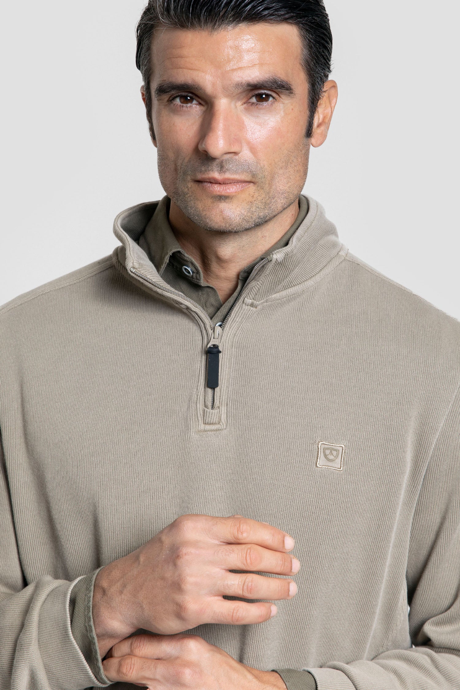 • Jersey Cuello Cremallera Taupe - Raíces